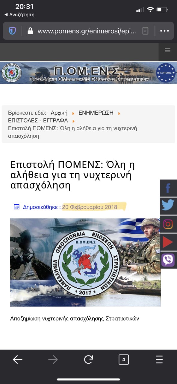 Η Πανελλήνια Ομοσπονδία Ενώσεων Στρατιωτικών – ΠΟΜΕΝΣ, ανεξαρτήτως κατά πόσο ευσταθούν ή όχι δημοσιεύματα σχετικά με την νυχτερινή αποζημίωση, διαβάστε πώς επιβεβαιώνεται δύο μισή και πλέον χρόνια πριν.