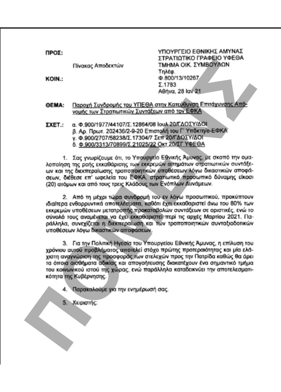 <Η ΠΟΜΕΝΣ στον ΕΦΚΑ για τις καθυστερήσεις στην έκδοση συντάξεων των Στρατιωτικών>