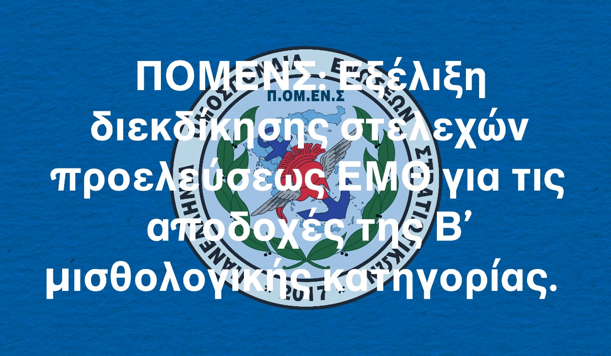 ΠΟΜΕΝΣ: Εξέλιξη διεκδίκησης στελεχών προελεύσεως ΕΜΘ για τις αποδοχές της Β’ μισθολογικής κατηγορίας.
