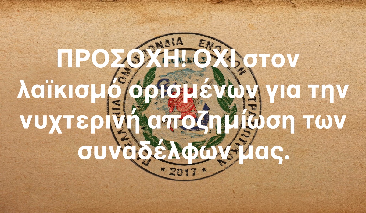 Δυστυχώς φαίνεται ότι ένα σημαντικότατο ζήτημα που απασχολεί το σύνολο των συναδέλφων, όπως η αποζημίωση για νυχτερινή εργασία, αντιμετωπίζεται από κάποιους με χαρακτηριστική επιπολαιότητα.