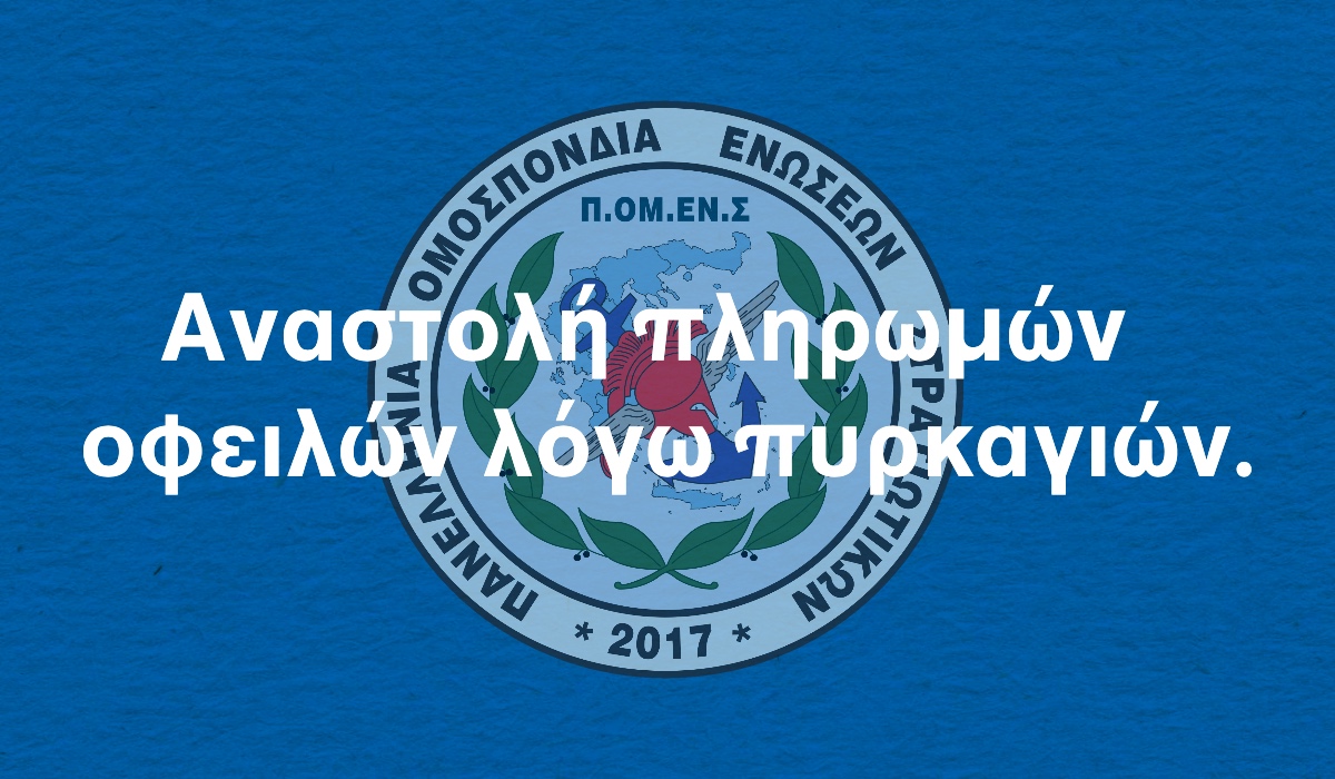 Αναστολή πληρωμών οφειλών λόγω πυρκαγιών.