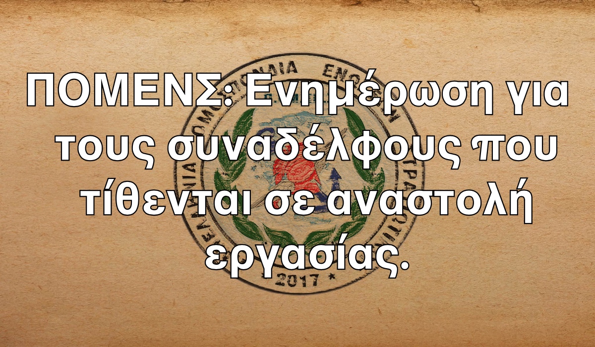 ΠΟΜΕΝΣ: Ενημέρωση για τους συναδέλφους που τίθενται σε αναστολή εργασίας.