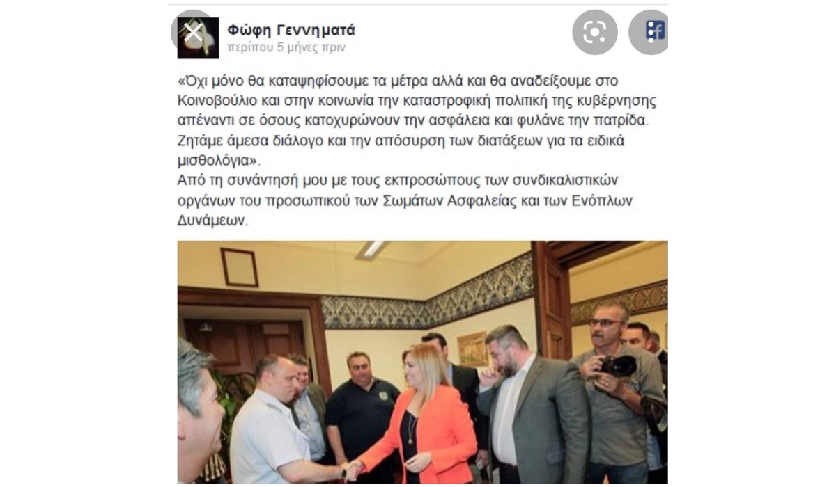 Η Πανελλήνια Ομοσπονδία Ενώσεων Στρατιωτικών - ΠΟΜΕΝΣ εκφράζει με ειλικρινή και βαθύτατη συγκίνηση, την θλίψη, που προκάλεσε σε κάθε εν ενεργεία στρατιωτικό, η απώλεια της Προέδρου του Κινήματος Αλλαγής, Φώφης Γεννηματά.