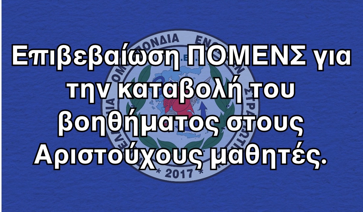 Η Πανελλήνια Ομοσπονδία Ενώσεων Στρατιωτικών - ΠΟΜΕΝΣ εκφράζει την ικανοποίηση της για την άμεση ανταπόκριση του ΓΕΣ στο σχετικό αίτημα της Ομοσπονδίας μας https://www.pomens.gr/enimerosi/epistoles/1758-pomens-ti-symvainei-me-tin-mi-katavoli-apozimiosis-gia-tin-vravefsi-ton-aristoyxon-mathiton-etous-2020-2021
