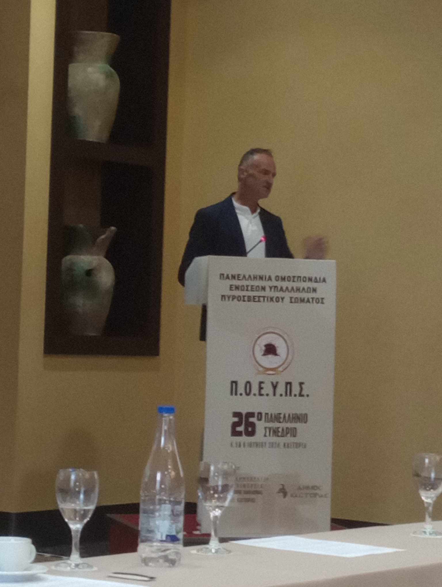 «Είμαι ιδιαίτερα υπερήφανος και χαρούμενος που βρίσκομαι ανάμεσα σε συναδέλφους των Σωμάτων Ασφαλείας. Αποτελεί τιμή μου η ευκαιρία που μου δίνετε να απευθύνω χαιρετισμό στο Τακτικό Συνέδριο της Ομοσπονδίας σας.