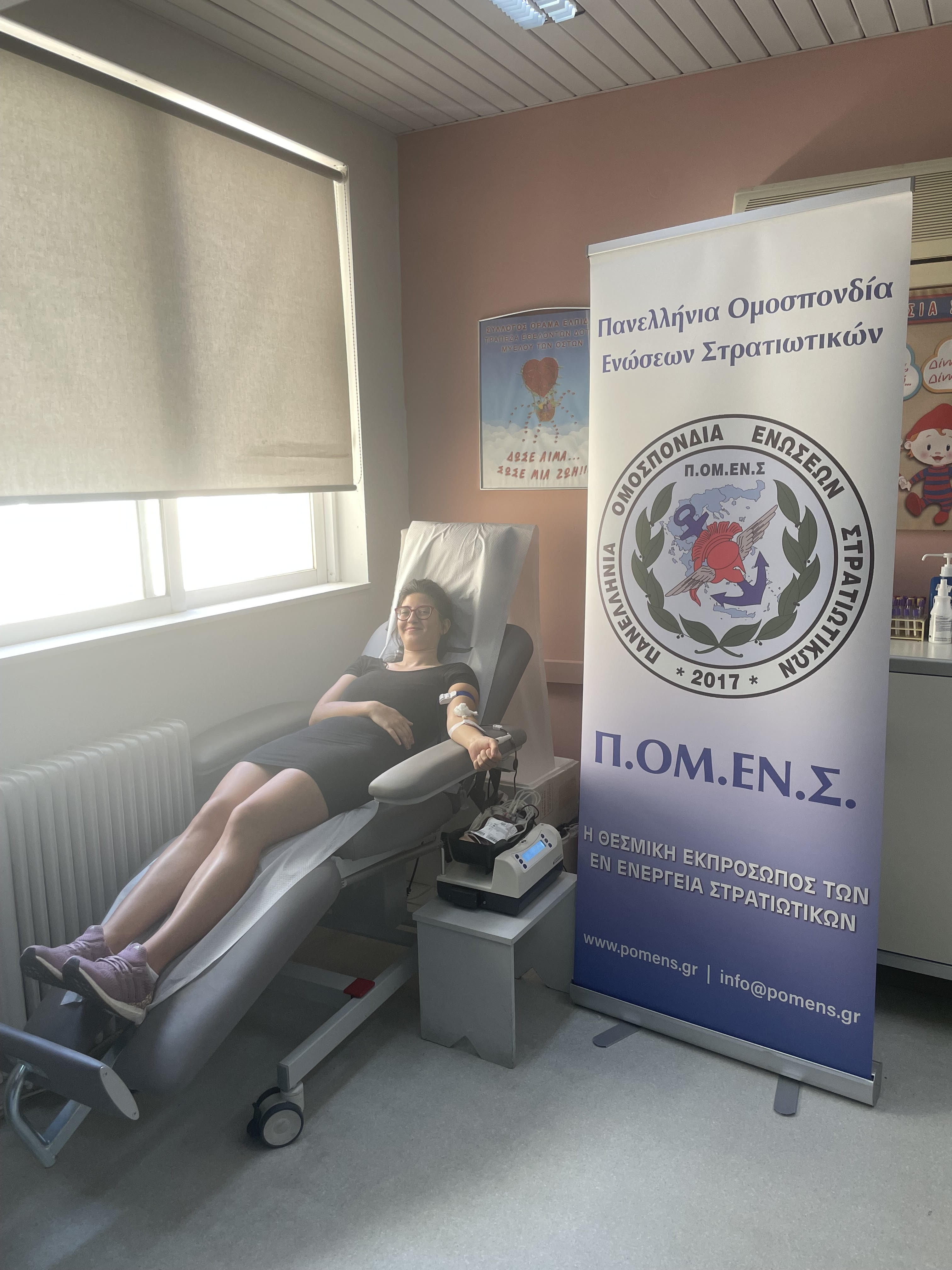 Ως Πανελλήνια Ομοσπονδία Ενώσεων Στρατιωτικών - ΠΟΜΕΝΣ, στο πλαίσιο των αρμοδιοτήτων μας και στην επιθυμία μας να πραγματοποιούμε δράσεις οι οποίες στοχεύουν στην κοινωνική προστασία και αλληλεγγύη, στην αναβάθμιση της ποιότητας ζωής των Στρατιωτικών και στην εξυπηρέτηση των αναγκών τους, καλούμε και ενθαρρύνουμε τα μέλη των Διοικητικών Συμβουλίων όλων των Πρωτοβάθμιων Ενώσεων Στρατιωτικών της ΠΟΜΕΝΣ, όπως επίσης όλες και όλους τους συναδέλφους μας ανά την Επικράτεια, να συνεχίσουν να συμμετέχουν στις εθελοντικές δράσεις αιμοδοσίας, προς ενίσχυση του αποθέματος σε μονάδες αίματος, της Τράπεζας Αίματος της Ομοσπονδίας μας.