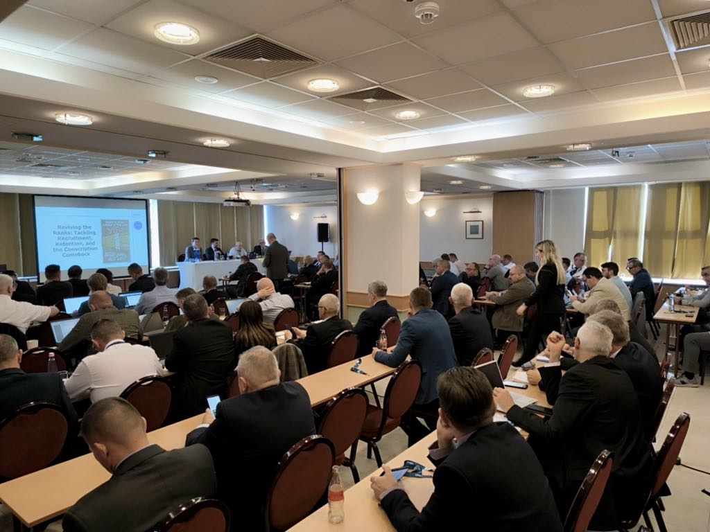 Πραγματοποιήθηκε μια ειδική συζήτηση σε πάνελ για ζητήματα που σχετίζονται με την προσέλκυση νέων στις Ε.Δ., το υψηλό ποσοστό παραιτήσεων και τη στράτευση στις ΕΔ της Ευρώπης. Κατά τη διάρκεια της συζήτησης, ο Emmanuel Jacob παρουσίασε ευρήματα από την τελευταία έρευνα του EUROMIL για το θέμα, υπογραμμίζοντας την ανάγκη προσέλκυσης νέων ανθρώπων, μέσω της βελτίωσης του εργασιακού περιβάλλοντος. Στο πάνελ συμμετείχε επίσης με παρουσίαση ο Cornelius Wiesener, Επίκουρος Καθηγητής της Νομικής Σχολής του Πανεπιστημίου της Κοπεγχάγης, ο οποίος ανέλυσε τη στράτευση στην Ευρώπη, εστιάζοντας στα υποχρεωτικά μοντέλα θητείας και στις στρατηγικές ενίσχυσης των κινήτρων και εναλλακτικών επιλογών υπηρεσίας. Το πάνελ συντόνισε το μέλος του Διοικητικού Συμβουλίου του EUROMIL και Αν. Γραμ. Οργανωτικού της ΠΟΜΕΝΣ, Γεώργιος Ζγαρδανάς, παραθέτοντας πληροφορίες για τις τρέχουσες συνθήκες στην Ελλάδα.