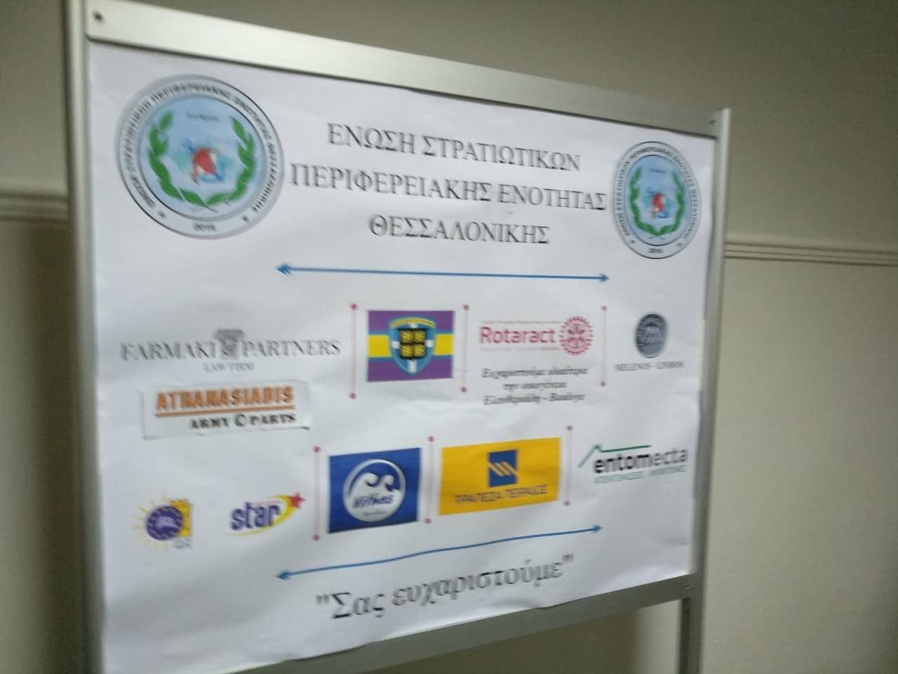 Θα ήταν μεγάλη παράλειψη από εμάς να μην ευχαριστήσουμε τον Δκτη του Γ΄ΣΣ – NRDC GR Αντγο Μπίκο Δημήτριο για την παραχώρηση των γραφείων και την πολύτιμη βοήθεια του όποτε ζητήθηκε, τους φίλους και συναδέλφους που στάθηκαν δίπλα μας ώστε να πραγματοποιηθεί το όνειρο όλων των στρατιωτικών της Θεσσαλονίκης , η λειτουργία των γραφείων της Ένωσης .