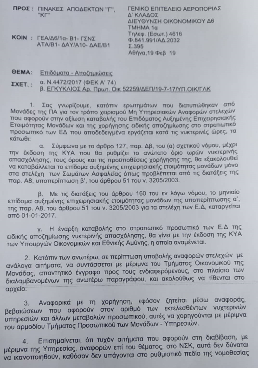 Μετά από εισήγηση της ΠΟΜΕΝΣ και από πληθώρα προσωπικών αναφορών συναδέλφων μας, το Γενικό Επιτελείο Αεροπορίας εξέδωσε διαταγή με την οποία ζητά από τις Μονάδες του, να εκδώσουν βεβαιώσεις στο προσωπικό, για τις νυχτερινές υπηρεσίες που έχουν εκτελέσει.