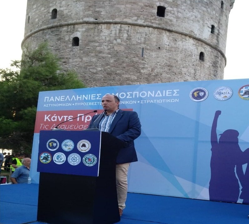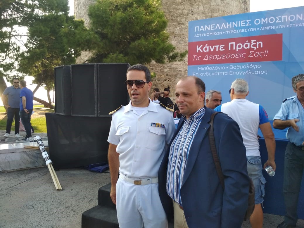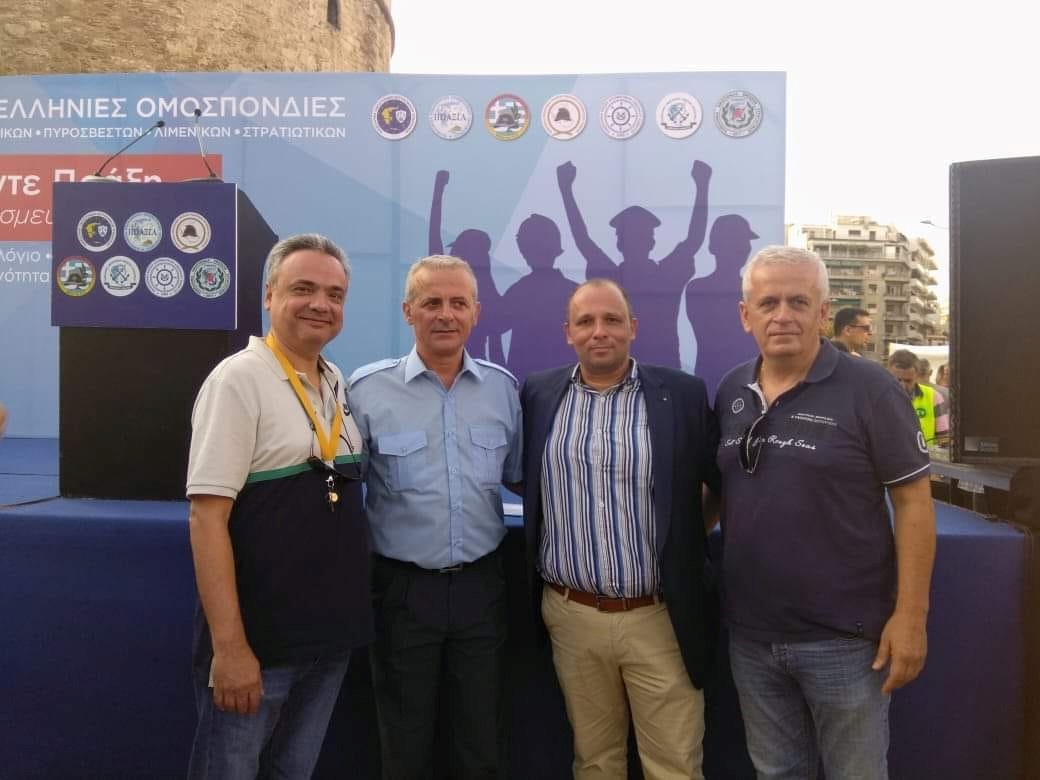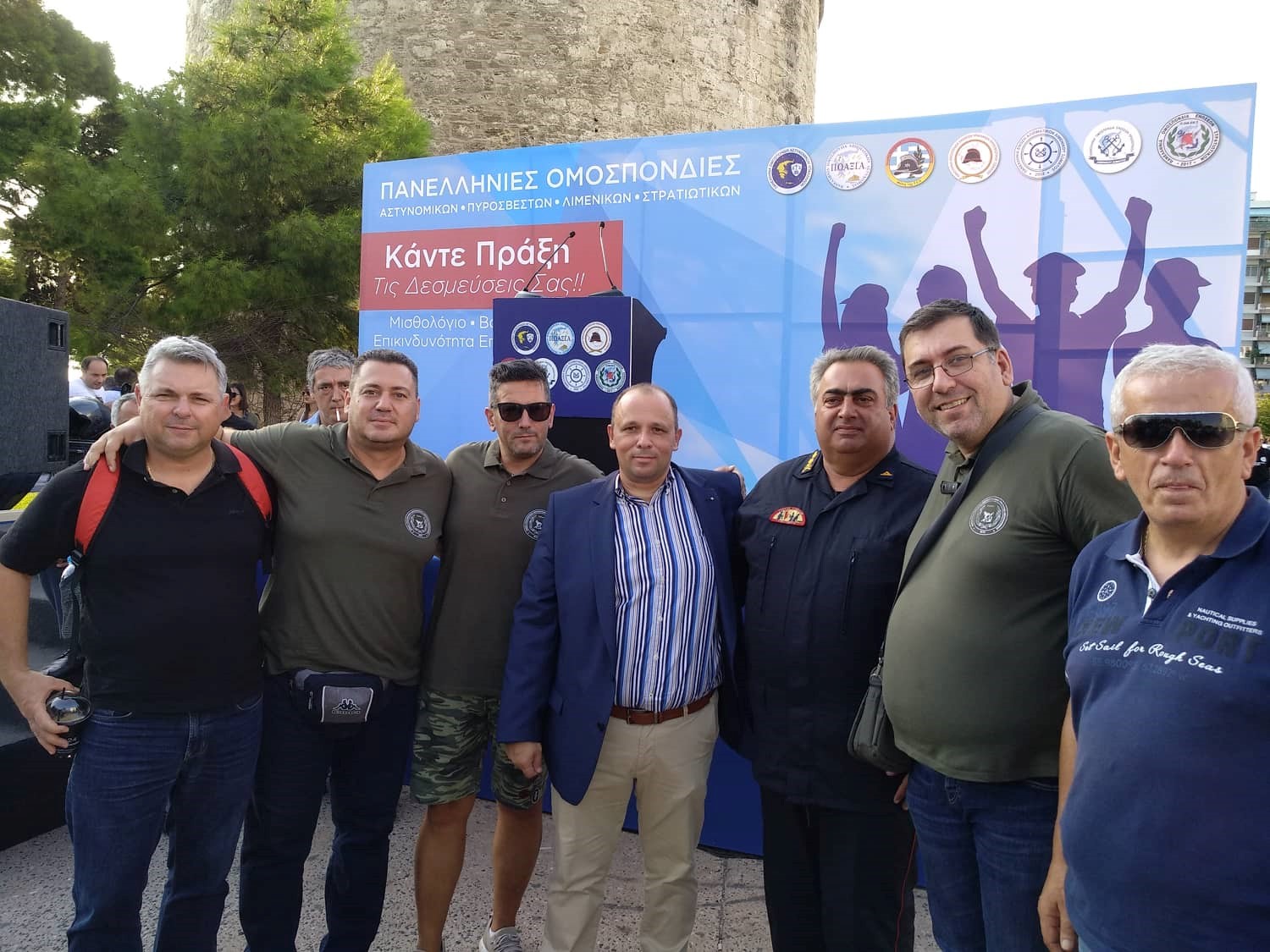 Αντιπροσωπεία της Π.ΟΜ.ΕΝ.Σ. με επικεφαλής τον Πρόεδρο και μέλη του Διοικητικού Συμβουλίου της Ομοσπονδίας καθώς και εκπροσώπους των Πρωτοβάθμιων Ενώσεων, έδωσε από κοινού με τις Ομοσπονδίες των Σωμάτων Ασφαλείας το βροντερό παρών στη συγκέντρωση που πραγματοποιήθηκε στον χώρο του Λευκού Πύργου.