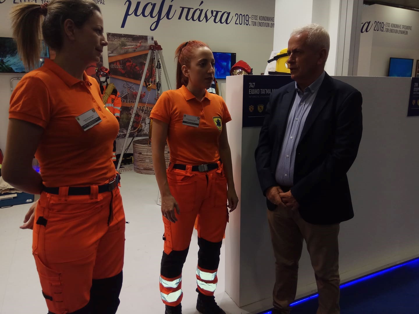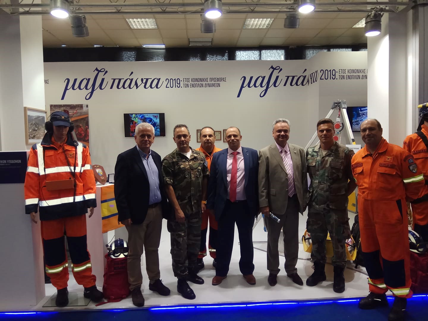 Κατά την διάρκεια της επίσκεψης στο περίπτερο του ΥΠΕΘΑ, δόθηκε η ευκαιρία στα μέλη της ΠΟΜΕΝΣ να συνομιλήσουν με συναδέλφους οι οποίοι στελεχώνουν ειδικές ομάδες των Ενόπλων δυνάμεων και ομάδες με αξιοσημείωτα θετικό πρόσημο προσφοράς προς την Ελληνική κοινωνία και όλους τους συμπολίτες μας, συζητώντας μαζί τους για τα ιδιαίτερα προβλήματα που αντιμετωπίζουν.