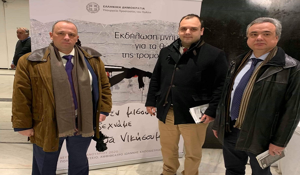 Τη Δευτέρα 20 Ιανουαρίου 2020, ο Πρόεδρος και αντιπροσωπεία του Δ.Σ. της Ομοσπονδίας μας, παρευρέθηκαν στην εκδήλωση μνήμης για τα θύματα της τρομοκρατίας.