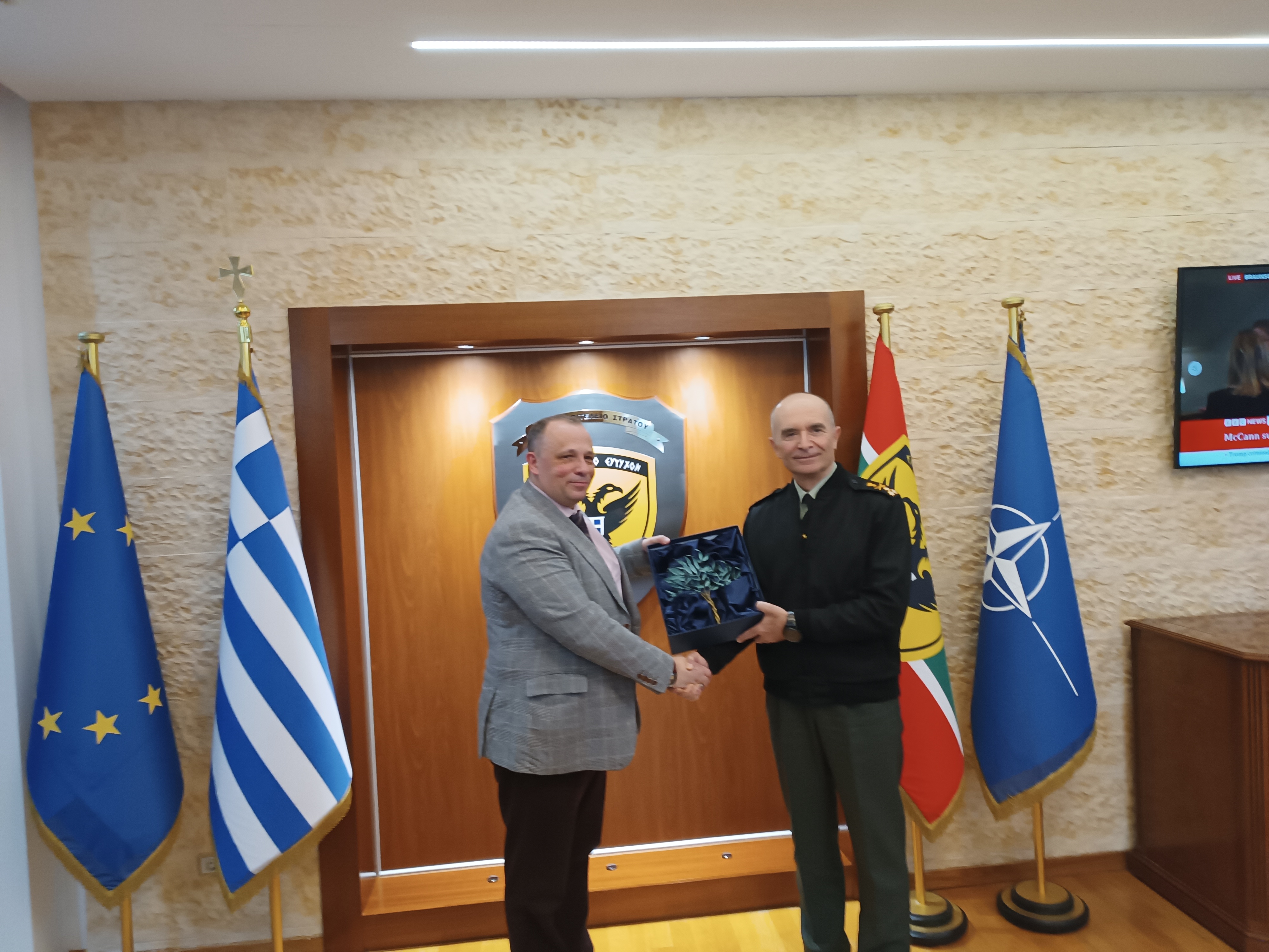 Σήμερα Παρασκευή 16 Φεβρουαρίου 2024, αντιπροσωπεία του ΔΣ της Π.ΟΜ.ΕΝ.Σ αποτελούμενη από τον Πρόεδρο Δημήτριο Ρώτα, τον Γραμματέα Οργανωτικού Ηλία Κολλύρη, τον Αντιπρόεδρο Ασφαλιστικών και Συνταξιοδοτικών θεμάτων Ιωάννη Σπαράγγη, τον Αντιπρόεδρο Ενημέρωσης και Πληροφοριακών Συστημάτων Νικόλαο Ασφή και την Γραμματέα Ισότητας Φύλων Κατερίνα Κιουρτσίδου, είχε την τιμή να πραγματοποιήσει θεσμική συνάντηση με τον Αρχηγό Γενικού Επιτελείου Στρατού Αντιστράτηγο Γεώργιο Κωστίδη.