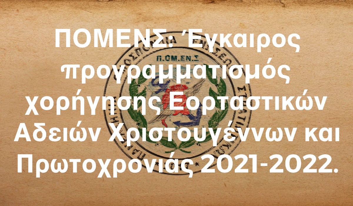 3. Η Πανελλήνια Ομοσπονδία Ενώσεων Στρατιωτικών - Π.ΟΜ.ΕΝ.Σ., κατόπιν σχετικού εγγράφου της Ένωσης Στρατιωτικών Περιφερειακής Ενότητας Ρόδου (Ε.Σ.ΠΕ.Ε.Ρ.), σεβόμενη σε κάθε περίπτωση τα επιδημιολογικά μέτρα που μπορεί να επικρατούν στη Χώρα λόγω της πανδημίας του COVID-19, προτείνει όπως εξετάσετε την δυνατότητα επίσπευσης έκδοσης της διαταγής χορήγησης, της ειδικής εορταστικής άδειας, για την περίοδο των Χριστουγέννων και της Πρωτοχρονιάς προκειμένου τα στελέχη των Ενόπλων Δυνάμεων να προβούν στην έγκαιρη εξεύρεση οικονομικών εισιτηρίων, με το μέσο μεταφοράς της επιλογής τους.