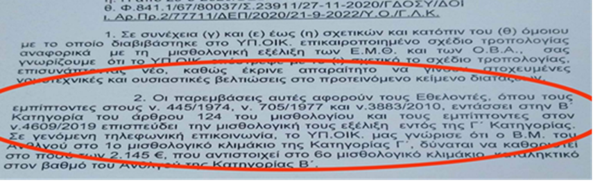 γ. Τι έχει αλλάξει από το 2020 όταν ο κ. ΥΕΘΑ απέστειλε σχέδιο τροπολογίας, στο Υπουργείο Οικονομικών για την ένταξη των Αξιωματικών Εθελοντών Μακράς Θητείας στη Β’ Κατηγορία; (Εικόνα 5)