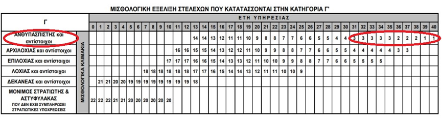 β. Διαπιστώνεται ότι ήδη υπάρχοντα κλιμάκια της Γ΄ Κατηγορίας και συγκεκριμένα τα κλιμάκια Γ1, Γ2 και Γ3, που αφορούν στον Βαθμό του Ανθυπασπιστή, κάποιοι προσπαθούν να τα βαφτίσουν ως μισθολογική αποκατάσταση των Αξιωματικών Εθελοντών Μακράς Θητείας, ενώ δεν υπάρχει καμία αναφορά για τον βαθμό του Υπολοχαγού! (Εικόνες 3-4)