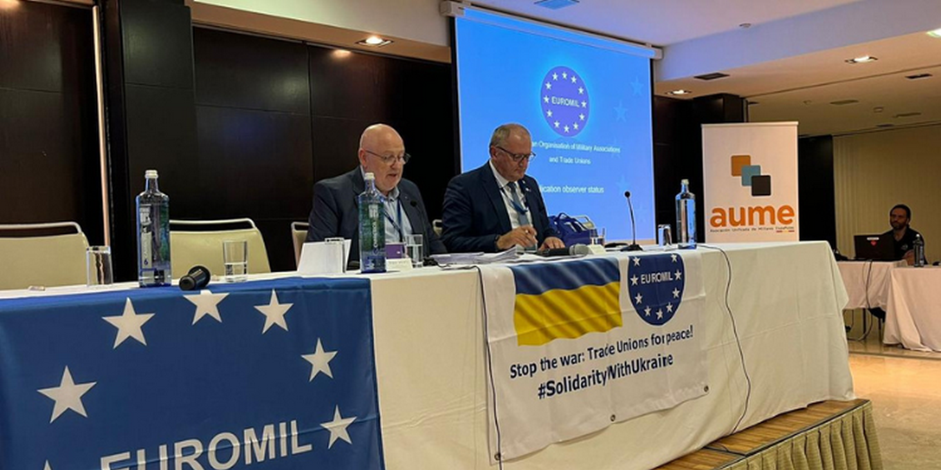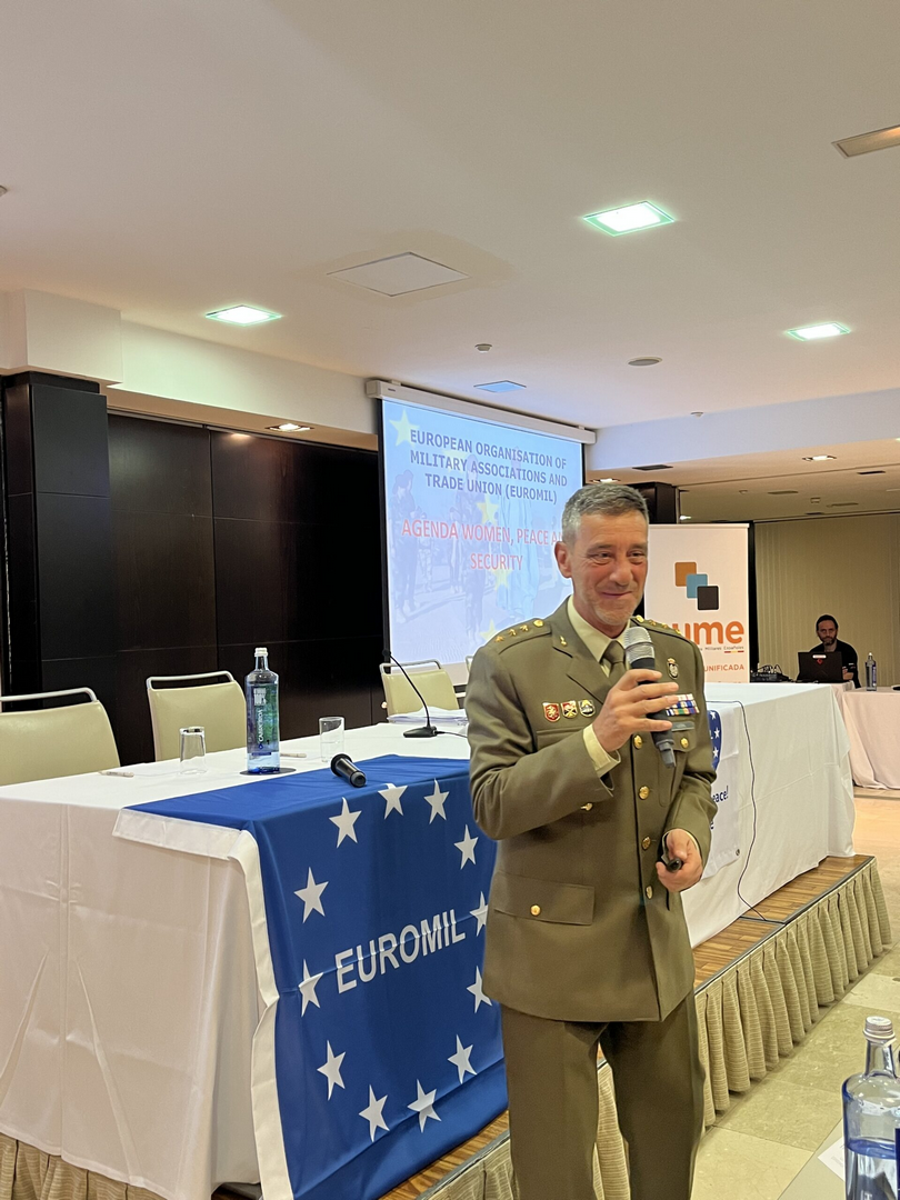 Ο Γενικός Γραμματέας της AUME (Asociación Unificada de Militares Españoles), τόνισε τη σημασία της υποστήριξης από οργανισμούς όπως ο EUROMIL. Επίσης τόνισε ότι το στρατιωτικό προσωπικό είναι πρώτα και κύρια ισότιμοι πολίτες. Στον απόηχο της εποχής της δικτατορίας της Ισπανίας, θεσπίστηκε το ισπανικό σύνταγμα του 1975, ωστόσο, άφησε το στρατιωτικό προσωπικό με περιορισμένα δικαιώματα εκπροσώπησης. Αυτό οδήγησε σε ένα σημαντικό χάσμα μεταξύ της εξέλιξης της στρατιωτικής και της πολιτικής κοινωνίας. Ο Γενικός Γραμματέας της AUME υποστήριξε ότι το θεμελιώδες δικαίωμα στην εκπροσώπηση είναι το κλειδί για τη γεφύρωση αυτού του χάσματος, επίσης τόνισε την ανάγκη για αλλαγή στο νομοθετικό πλαίσιο της Ισπανίας. Εξέφρασε την επιθυμία να μετατραπούν τα στρατιωτικά αστικά σωματεία σε συνδικαλιστικά. Τόνισε ότι το στρατιωτικό προσωπικό εξακολουθεί να αντιμετωπίζει περιορισμούς όσον αφορά τα δικαιώματά του σε σχέση με τον ευρύτερο δημόσιο τομέα. Οι βελτιωμένες συνθήκες για το στρατιωτικό προσωπικό θα ωφελούσαν και θα βελτιώσουν την ποιότητα των υπηρεσιών που παρέχουν στην κοινωνία.