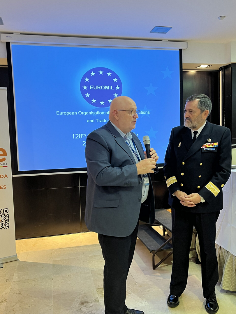 Στις 26-27 Οκτωβρίου 2023, ο EUROMIL πραγματοποίησε την 128η Γενική Συνέλευση της στην Ισπανία (Μαδρίτη), με οικοδεσπότη την Ένωση-μέλος της AUME (Asociación Unificada de Militares Españoles). Ο Πρόεδρος, Emmanuel Jacob άνοιξε το συνέδριο καλωσορίζοντας τα μέλη, ευχαρίστησε επίσης την Ένωση της Ισπανίας για τη συνεργασία στη διοργάνωση της συνεδρίασης της Γενικής Συνέλευσης στη Μαδρίτη. Στις 26 Οκτωβρίου, πραγματοποιήθηκε μια συζήτηση με θέμα το δόγμα του στρατιωτικού και τα δικαιώματα του ως ισότιμου πολίτη και την εφαρμογή του στην Ισπανία. O Πρόεδρος Jacob τόνισε ότι τα μέλη των Ενόπλων Δυνάμεων δεν είναι απλώς ένστολοι επαγγελματίες, αλλά αποτελούν επίσης αναπόσπαστα μέρη της ευρύτερης κοινωνίας που ζουν και υπηρετούν και απαιτείται να απολαμβάνουν τα ίδια δικαιώματα.